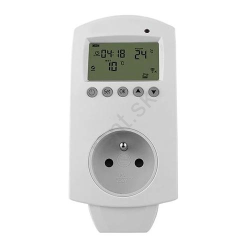 • Riadi napájanie pripojeného zariadenia cez výstupnú zásuvku podľa zvoleného programu, čím zabezpečuje úsporné a komfortné vykurovanie.