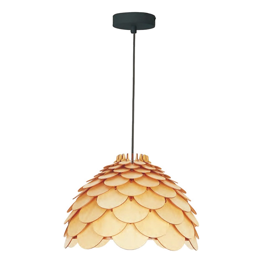 Závesný luster na lanku BURGO 1xE27/60W/230V, priemer 35 cm charakterizuje pekný dizajn a funkčné prevedenie. Do svietidla je určená žiarovka s päticou E27. Tu si môžete kúpiť ďalšie žiarovky za výhodnú cenu. Získate tak zaujímavý doplnok do svojho domova. Použité prírodné materiály vdýchnu každému produktu osobitý vzhľad. Charakteristické drevené rysy s hrčami a mozaikou sú zárukou jedinečnosti každého produktu a preto nemusí úplne zodpovedať obrázku. Preto by vás radi upozornili, že na rôznorodosť použitého prírodného materiálu se nevzťahuje reklamácia.