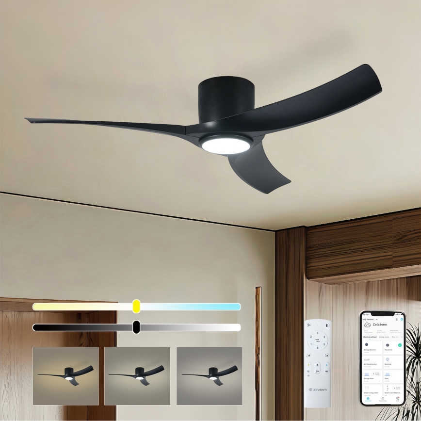 • ZEVENTI - LED Stmievateľný stropný ventilátor ORBITO LED/24W/230V 3000/4000/6000K Wi-Fi Tuya čierny + diaľkové ovládanie