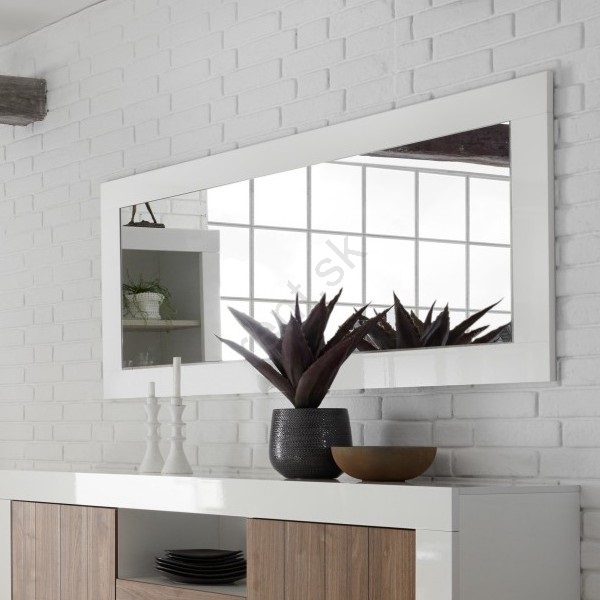 • Dizajnové nástenné zrkadlo s bielym rámikom.